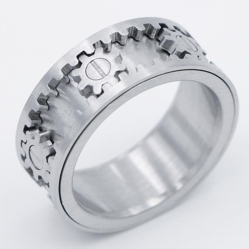 Made of matte stainless steel, the Gear Ring has tiny gears that spin when the outer rims are turned. Very cool. I would imagine it would be hard to resist fiddling with it all the time!