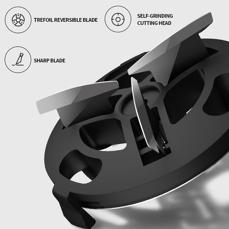 - Rotary trefoil head, sharp cut and shaved.