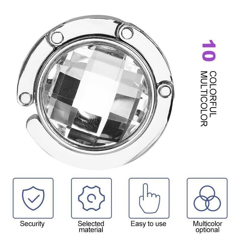 Folding Bag Hook: Each round hook is made of alloy with color diamond series, which looks more beautiful and refined.