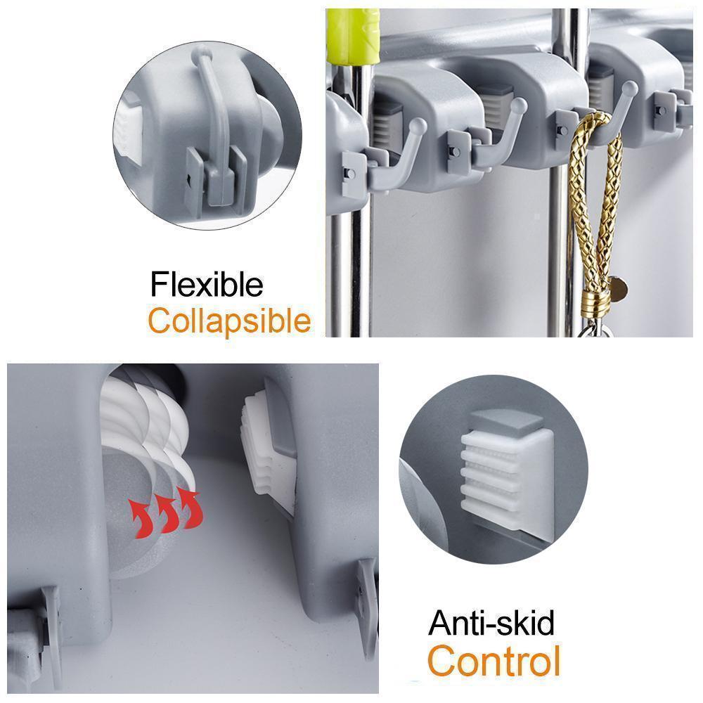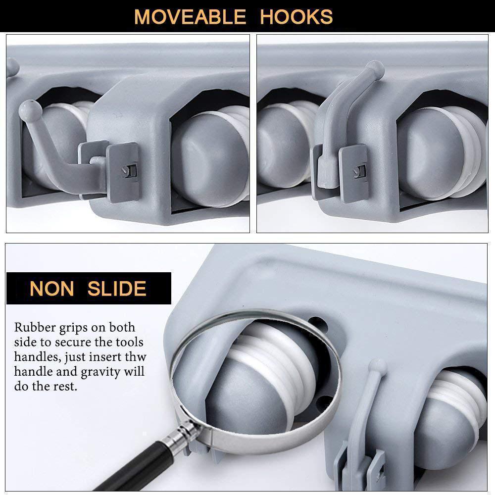- COMPACT & LASTING:Total 16 inches length, each ball holds up to 10 pound; each hook hold up to 5 pounds. Thanks to the spring loaded, double rubber gripped slots, whether dirty rakes or wet mops, we guarantee nothing slips. Simply by lifting the handle, the rolling balls automatically adjust to each handle's thickness and grip it securely.
