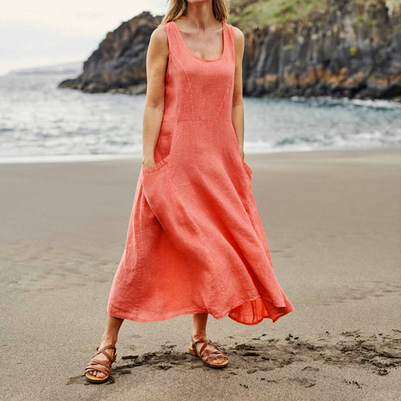 - 1* Women's Sleeveless Cotton And Linen Dress