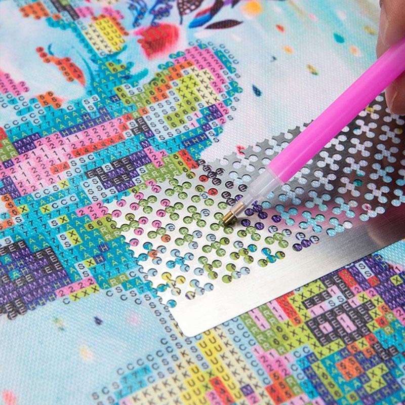 The Diamond Painting Grid helps ensure that your diamonds stick where they’re supposed to. Just put the painting grid on the canvas and fill in the empty spaces for the perfect fit. This painting grid is seriously a lifesaver and will take your diamond painting look professional.