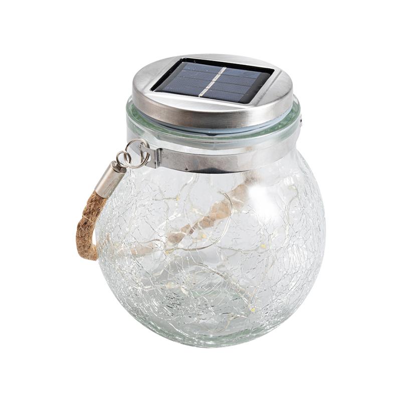 - Upgrade 30 LED Bulbs Crack Glass Jar Hanging Solar Lights - 3 meters long string lights with 30 LED bulbs is more brighter than other 20 LED bulbs.It’s more beautiful and bright in every occasion.The built-in battery is1.2V 600MAH,crack glass jar dimension: 4.9" Dia. x 5.5"H