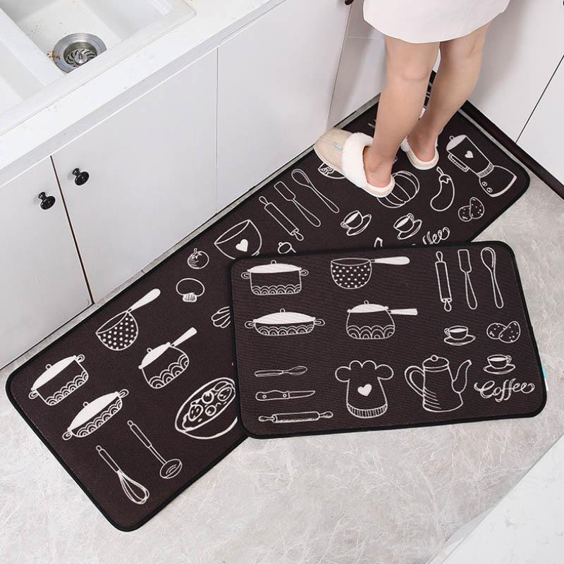 These kitchen rugs are made of microfiber material, with non-skid latex rubber backing ensure a safety using, soft surface is so comfort and ease to work on it even with bare feet.