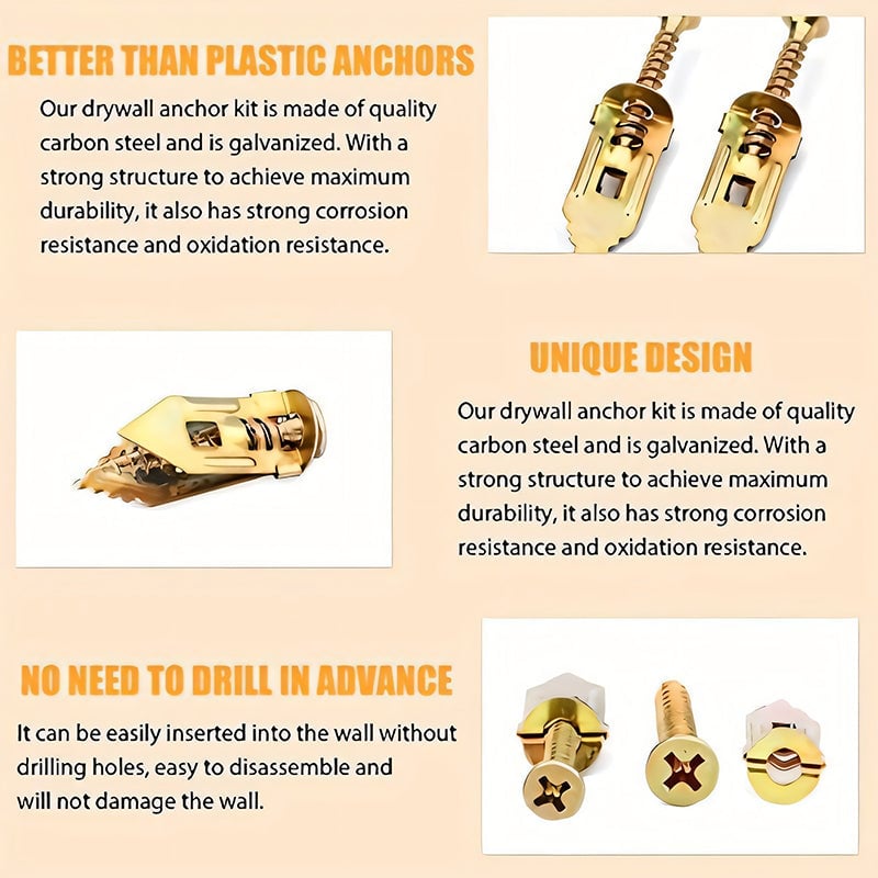 Whether you're hanging picture frames, shelves, or decorative pieces, these drywall anchors and screws provide unmatched stability and ease of use. Perfect for homes, offices, or DIY projects!