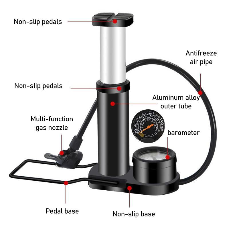 - Durable Materials: The rubber tube of the portable air pump is dismountable, frost-proof and high temperature resistance. Inner and outer tubes are made of high-strength aluminum alloy, which is more wear-resistant and has a smooth surface.