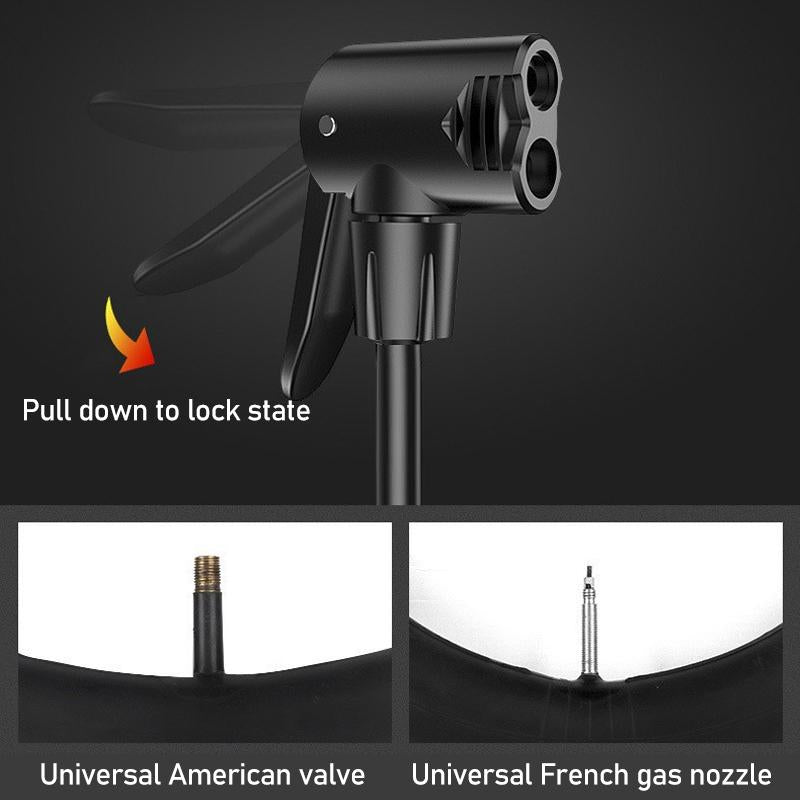 - 2 Vales: No adapters or adjustments needed, our pump is suitable for American and France air valve, fits Presta and Schrader Valve bikes.