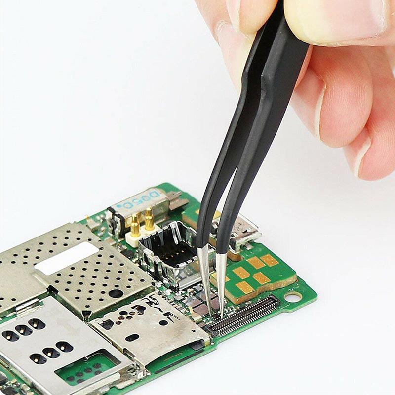 These safe plating tweezers have an electrostatic dissipative coating which helps protect electronic components from static damage. Non-magnetic tips help protect objects from sticking and improve working efficiency.