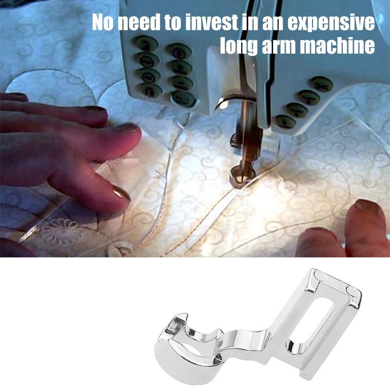 Ruler foot with outside diameter 1/2" giving accurate 1/4" from needle to the edge at all times.Special design with two "U" shape recesses - one on the front for sit-down free motion quilting and the other one on the side for stand-up quilting on the frame for better visibility.