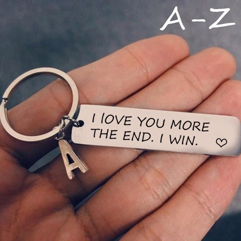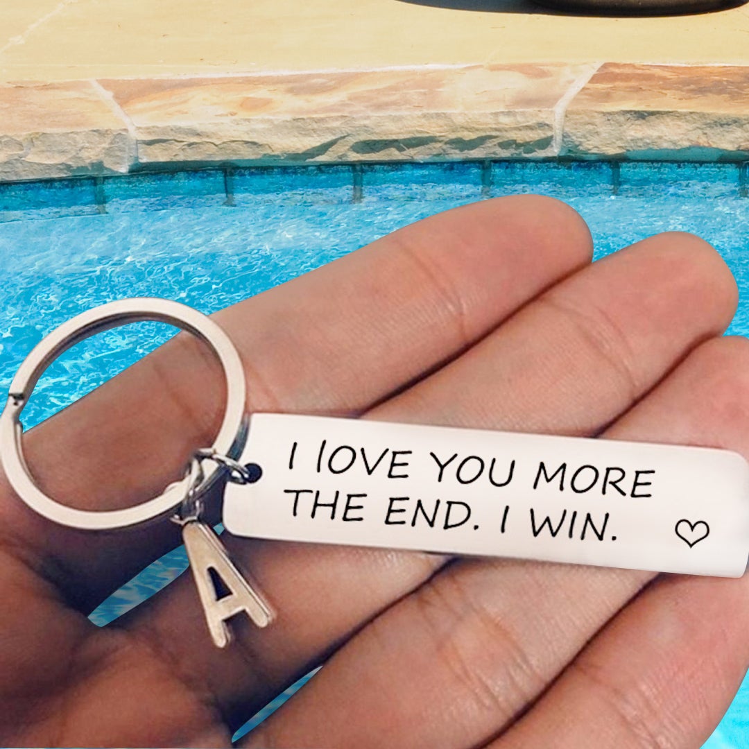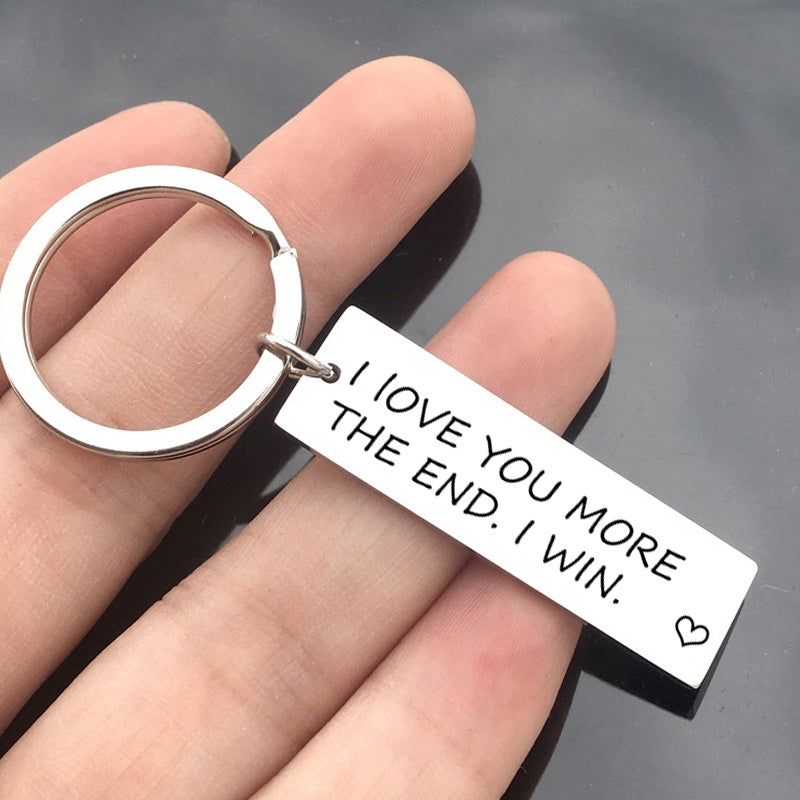 The 'I love you more. The end. I win.' keychain is a cute keychain for your partner in crime to prove that you truly win.