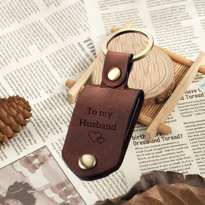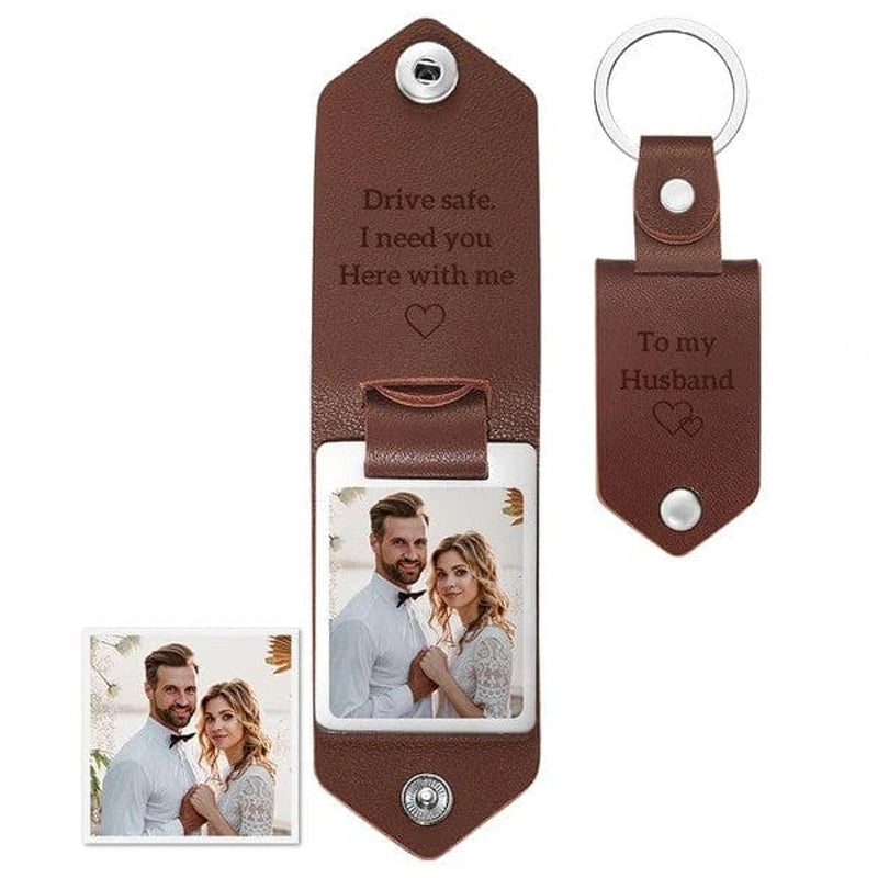 This metal and leather photo keyring makes the subtle yet stylish heartfelt Christmas, Father's Day, or birthday gift from a woman to man.