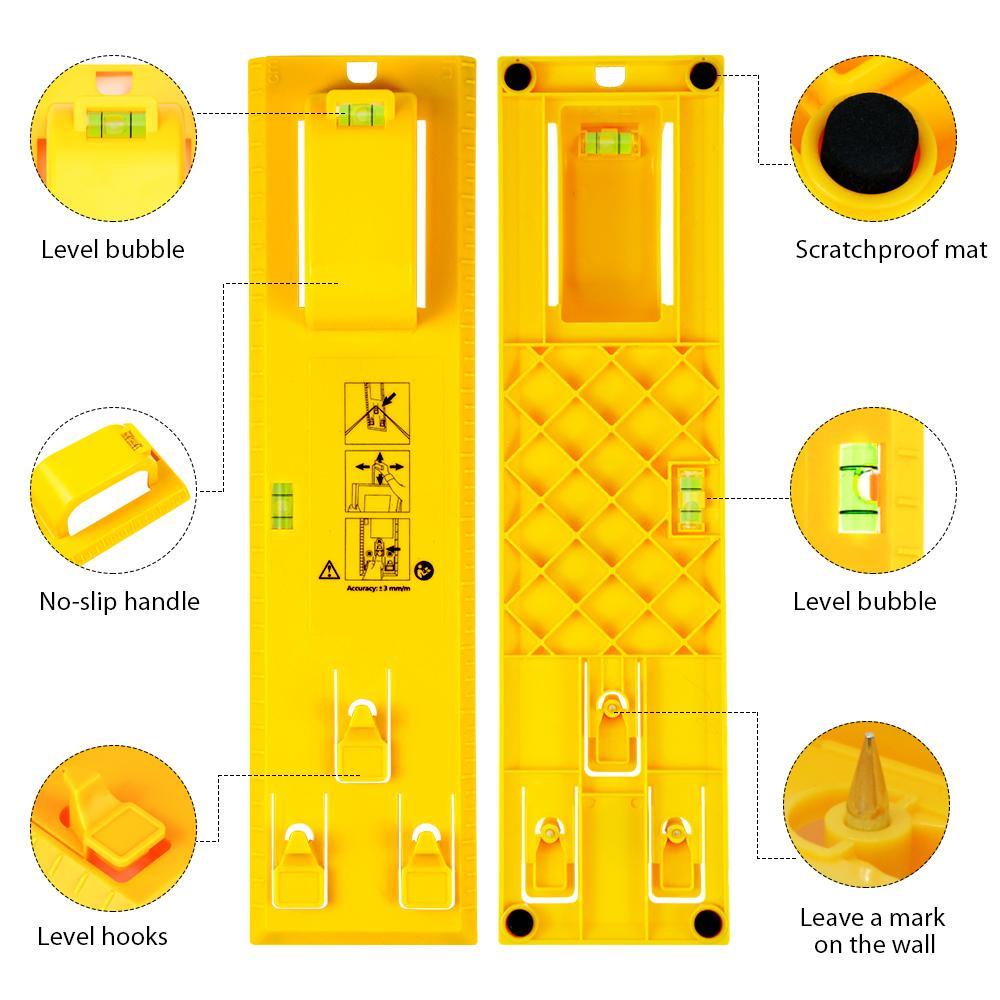 ⭐Built-in rulers for vertical and horizontal levels, mark the exact position of the nail, align and mark the photo on the wall, make sure the photo is well placed.