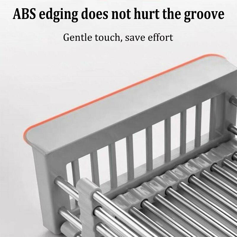 It is flexible to accommodate most sink sizes and It doesn’t take up valuable space and quickly rolls up for fast and easy storage!