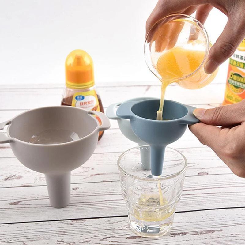 The Kitchen Funnel set of 4, which has 1 filter and 3 different sized funnels. It will help you prevent spillage effectively, say goodbye to waste and counter mess when infusing oils, home-brewing, spirits, flour, salt and etc, provide you a neat kitchen counter.