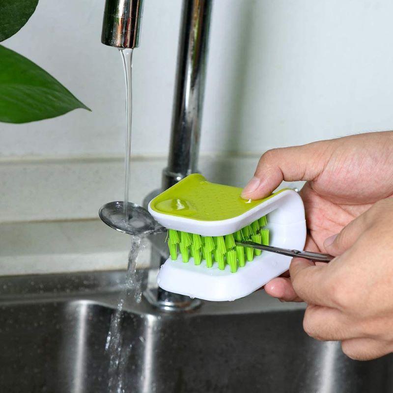 Brush with strong dual bristles to clean the toughest dirt and grease of your pots, pans, forks, knives, all utensils.