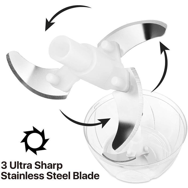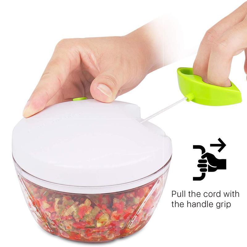 • Ergonomic Design - Comfort soft but strong grip lid attached, anti-skid base, flexible pull cord, TWO strong convenient handles design, Simply place ingredients in the container, twist and lock the lid, and pull the cord to spin the chopping blades.