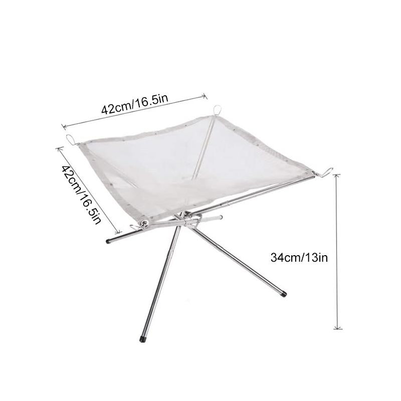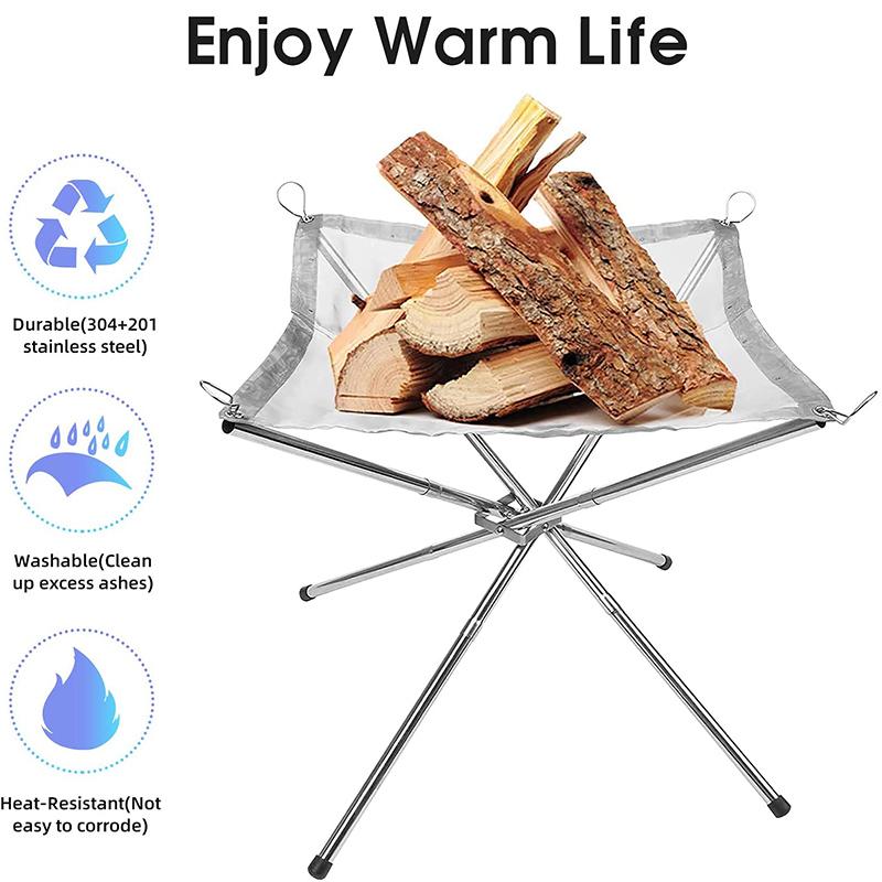 Portable and powerful load capacity: This fire pit features a rollable stainless steel net and folding legs. The crossing structure of the 4 stainless steel pipes has a fixed function to prevents the fire pit from tilting. Bearing capacity of 5 KG.