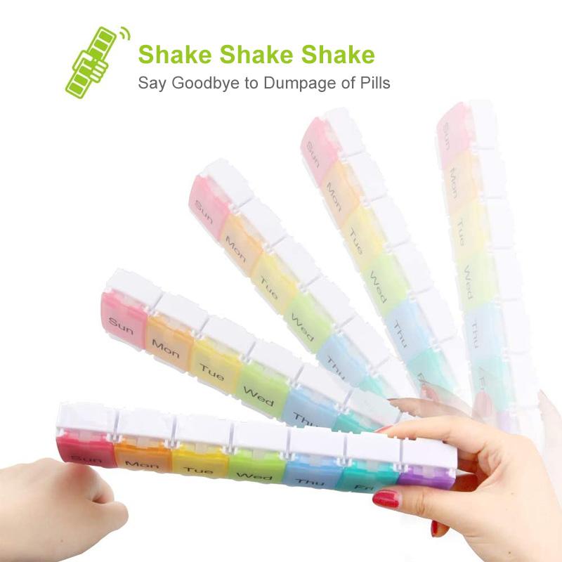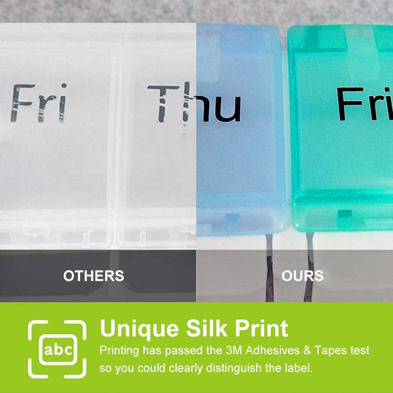 • PREMIUM SCREEN PRINTING. To avoid screen-printing fonts and icons falling off from the surface of the pill box, we use high-end screen printing ink and strictly do the Ink Adhesion Test with 3M Tapes before shipment. Thus, no need to be frustrated with the missing fonts of "Tuesday" or icons of "PM", and worry about mistakenly taking the wrong tablets.