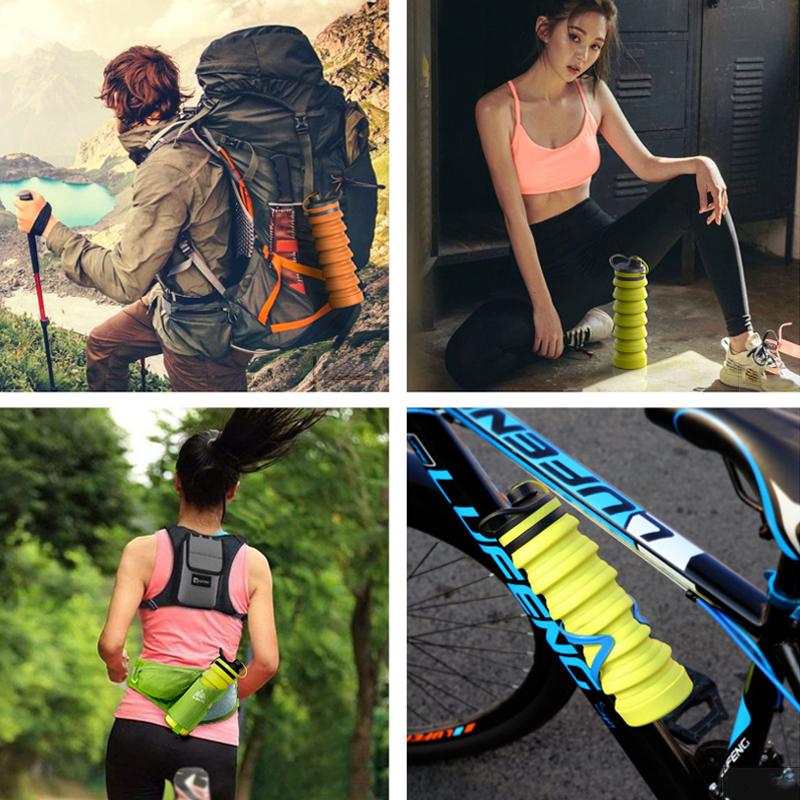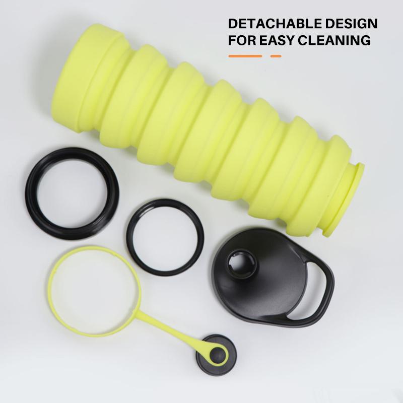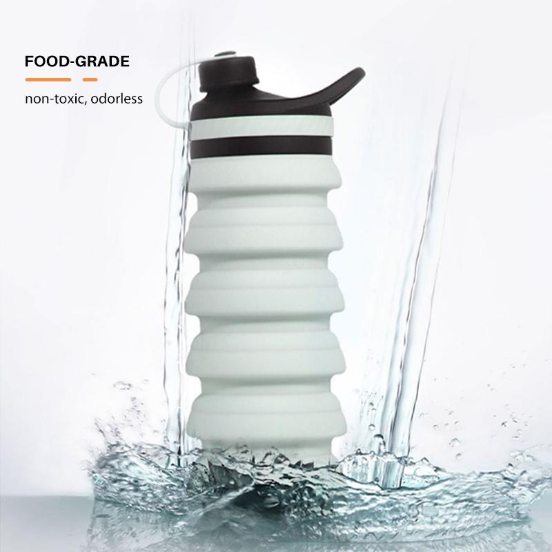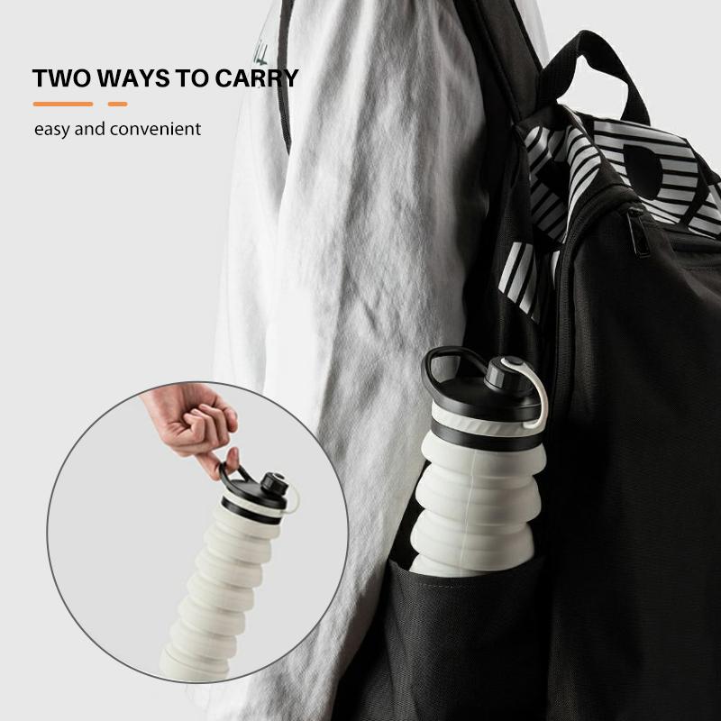 - [FEATURES]: The collapsible function is particularly suitable for simple packaging and size selection. It can be folded up and save 60% space. The 800 ml bottle is completely folded and only 15.7 cm high. When expanded, it is only 26.8 cm high. The best collapsible water bottles that don't take up space in your pocket. It is thick and stable and can stand upright very well. The soft silicone body is unbreakable and durable.