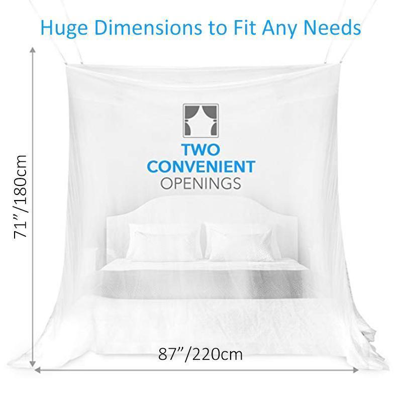 • Extra large King size, made for flexible use in all environments, in the bedroom (fits twin, double, queen and supreme king), on the patio, hammock, deck, barbeque, protecting you from mosquitoes, black flies, bugs and insects
