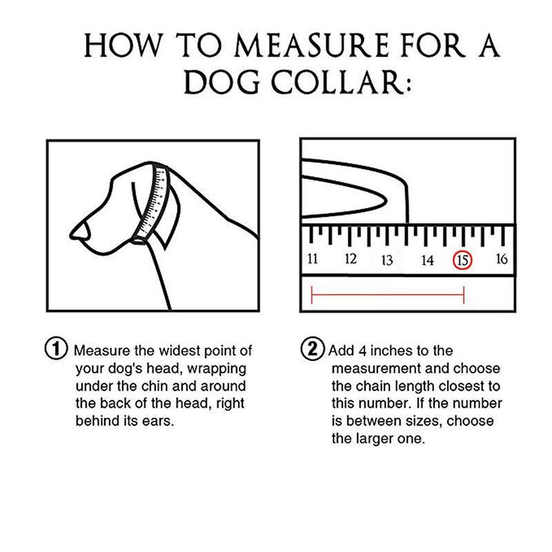 ★ Size Measuring: Please use a soft measuring tape to measure the circumference of the dog's neck or the widest part of the head. And the dog chain is better 3-4 inches longer than the dog's neck size. For example: the dog's neck size is 18inch, the suitable dog chain size is 22inches