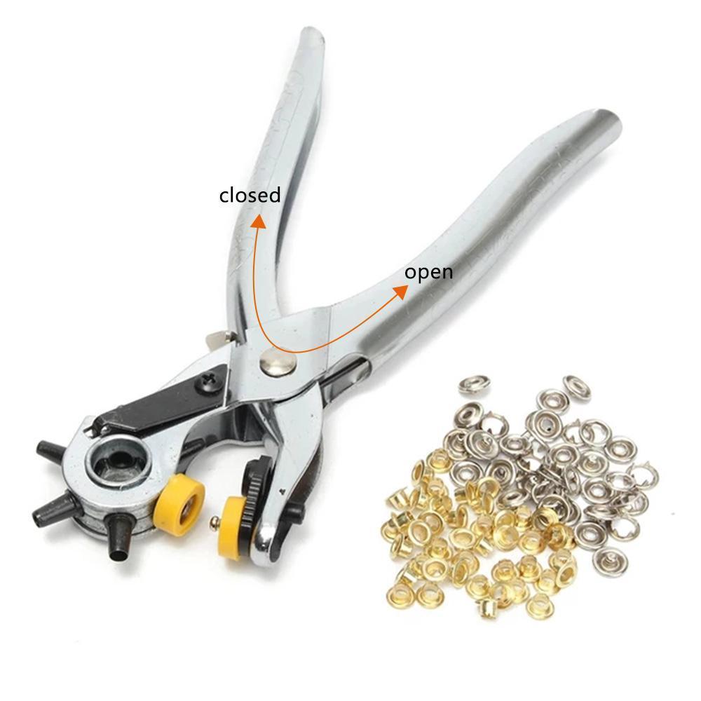 - This leather punch tool comes complete with 75 eyelets and snap fasteners and is equipped with 5 different hole sizes to fit all of your hole-punching needs.