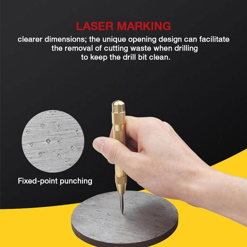 - The automatic center punch is the tool you need to create an indentation in working materials to help screws and drills to stay in place and resist from straying off center from your drill point. This comes in real handy when you are working with a delicate job or any important construction. This isn’t specific to professionals either, it is great for around the house drilling jobs as well. It is easy to use and protect your drill and your project.
