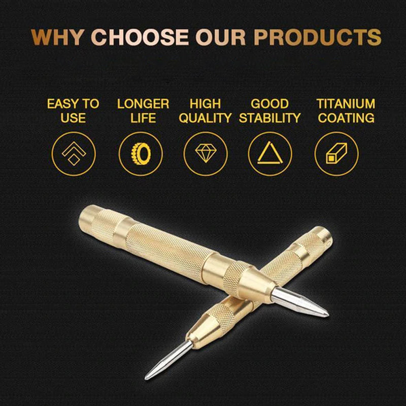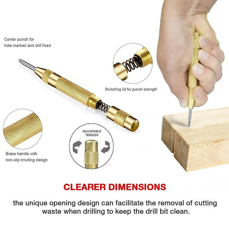• The automatic center punch is the tool you need to create an indentation in working materials to help screws and drills to stay in place and resist from straying off center from your drill point. This comes in real handy when you are working with a delicate job or any important construction. This isn’t specific to professionals either, it is great for around the house drilling jobs as well. It is easy to use and protect your drill and your project.