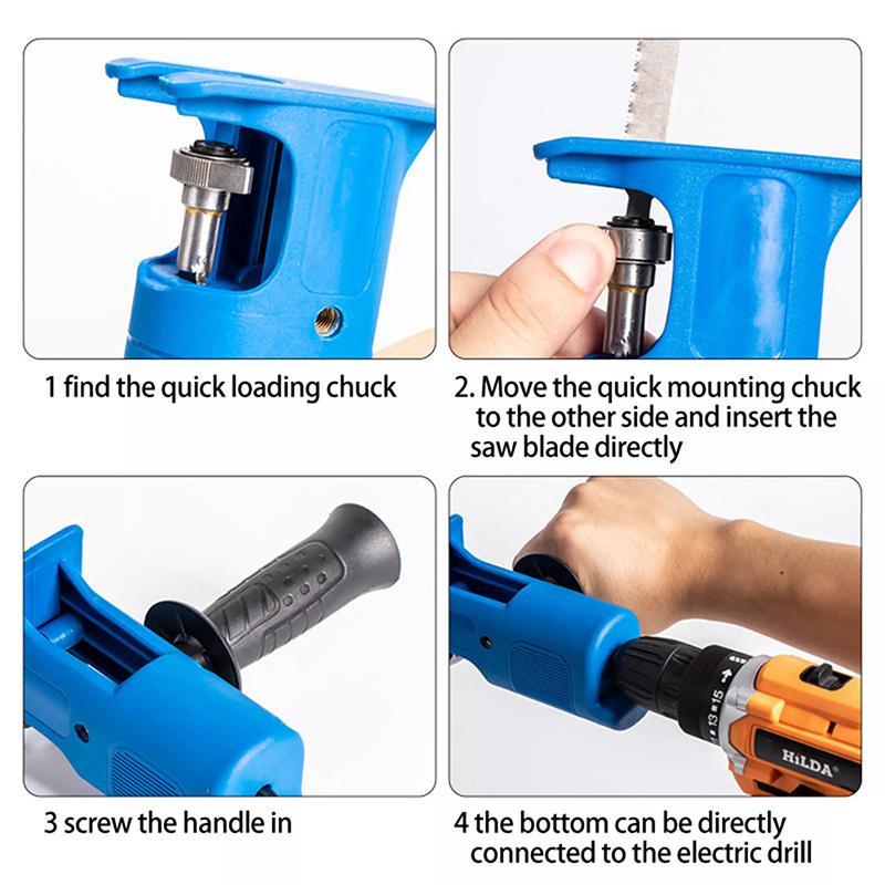 The protable reciprocating saw adapter has ergonomic handle, comfortable to hold, safe to carry, suitable for wood and metal cutting.