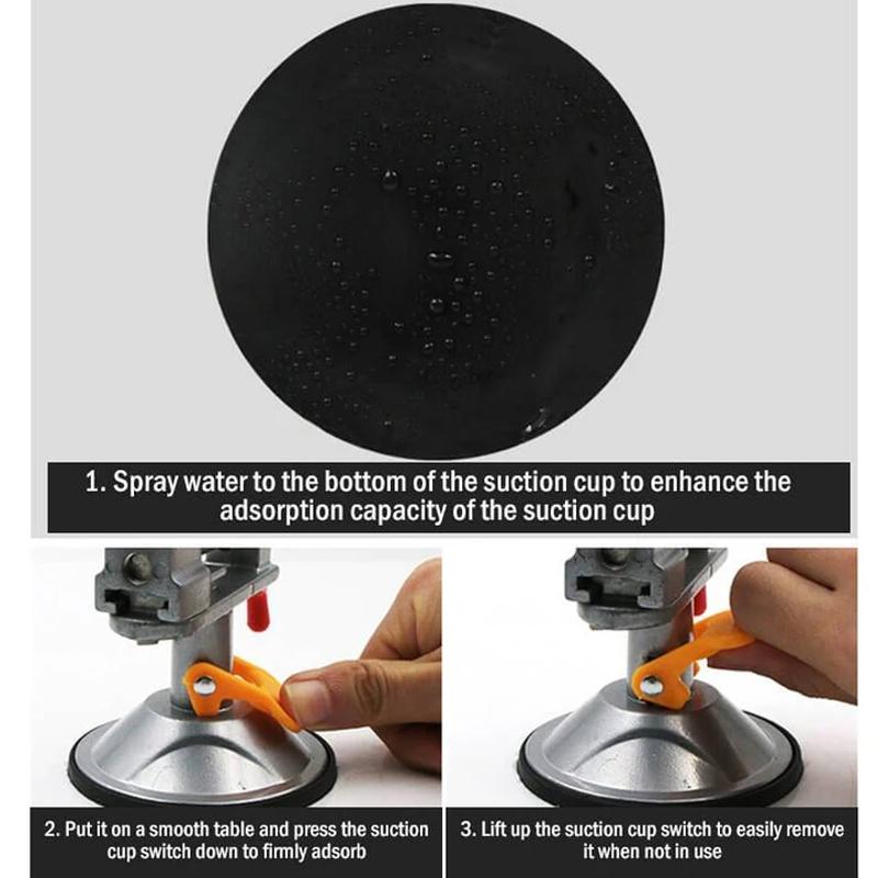 • Use the suction cup to spray water to the bottom to ensure that the table top is flat and clean, which can strengthen the suction capacity of the suction cup