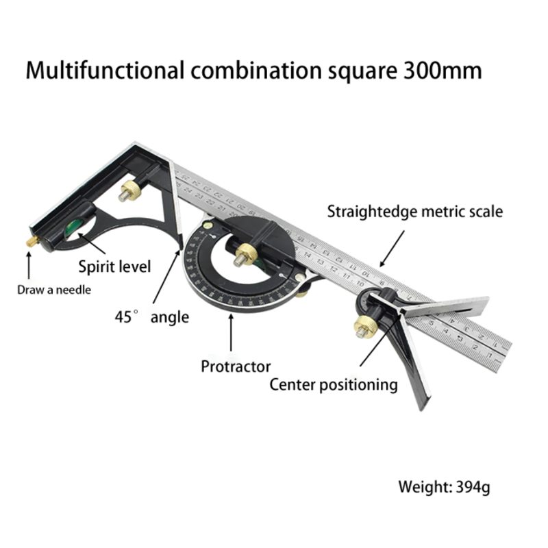 300mm/11.79inch, 45 degrees angle and slope can be measured through this measuring tool.