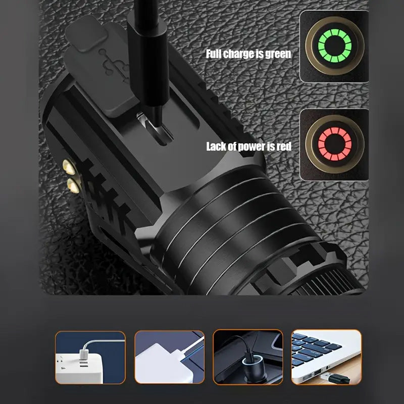 • 【Large Capacity Battery】This Mini Flash Super Power Flashligh features a built-in high-capacity rechargeable battery, making it the perfect solution for indoor climbing, survival backpacking, and any challenging outdoor activity.