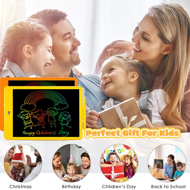 SAFE FOR KIDS: The LCD writing tablet adopts 2021 LCD pressure-sensitive technology and 10-inch LCD colorful screen. The eye-protection colorful screen of doodle board provides a better painting experience, no blue light, and glare, avoiding injury to child's eyes from long-term use. It's the best educational toy gifts for kids.