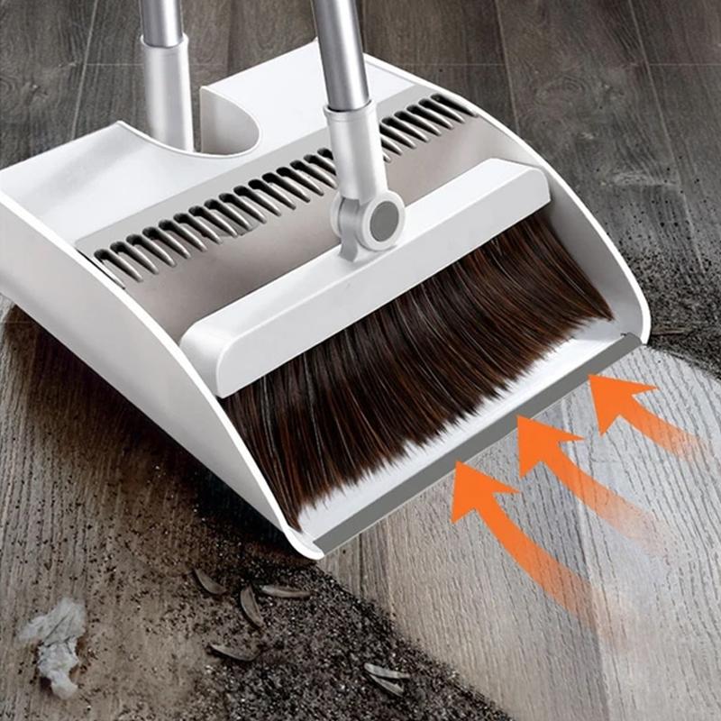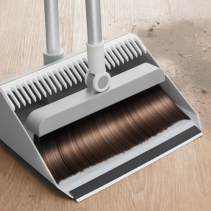 • NO BENDING OVER: Thanks to flush-with-the-surface rubber lip design as well as a flexible fiber bristle construction, this long handled standup broom kit allows you to sweep and pick-up small dirt comfortably.