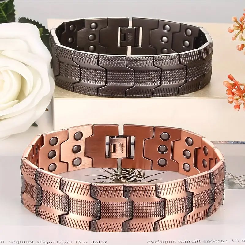 Featuring unique carved tire-pattern graphics and triple wide links, this copper bracelet offers a rugged yet modern style. It pairs perfectly with business attire, casual wear, or sports outfits—making it a versatile accessory for every scene.